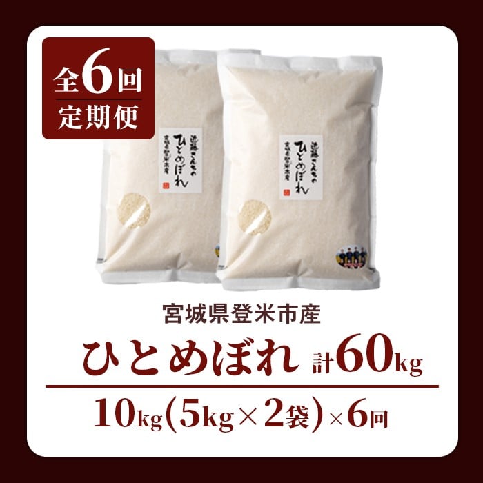 - 【6回定期便】≪令和7年産≫ ひとめぼれ 精米 計60kg(10kg×6回) 宮城県登米市産 お米 おこめ 米 コメ 白米 ご飯 ごはん おにぎり お弁当 6か月 頒布会【株式会社近藤農産】tm498