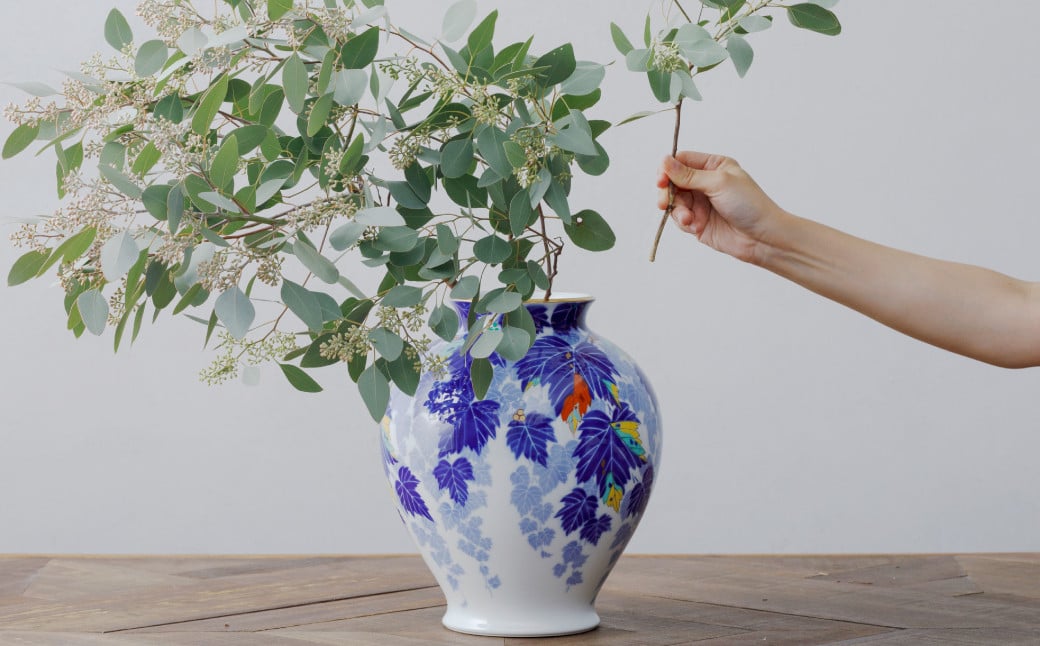 【瑞光窯-ZUIKOU-】フラワーベース&ドライフラワー No.011 Blue Jasper × カスミソウ 花 花瓶 陶磁器 シンプル 京都