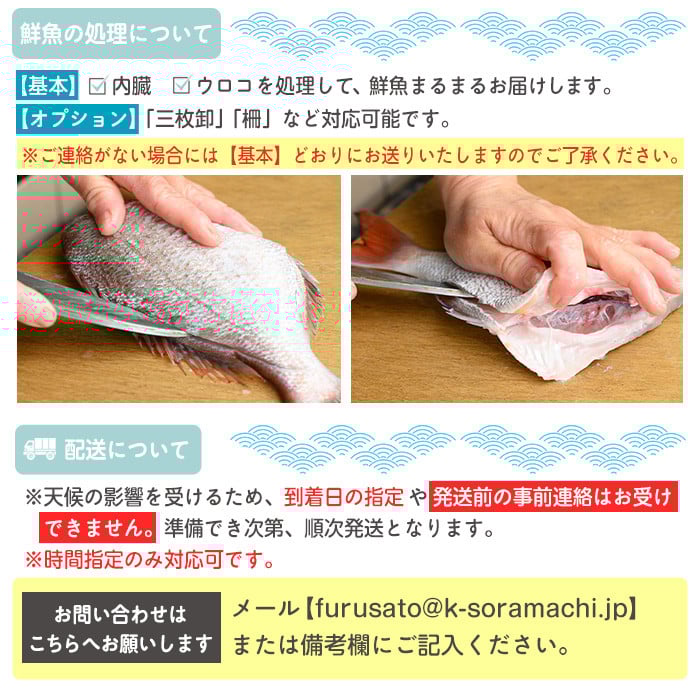 京都府宮津市産『朝どれ!山一鮮魚おおきに便』約4?5kg 魚介類 セット 産地直送 鮮魚 内臓処理加 鮮度抜群 冷蔵 詰め合わせ 旬 鯛 内臓処理加工