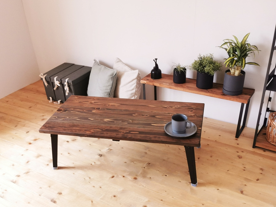 無垢材 折りたたみローテーブル ダークブラウン(圧着タイプ)|新星金属製作所 大阪府 守口市 [2482]
