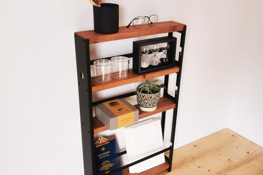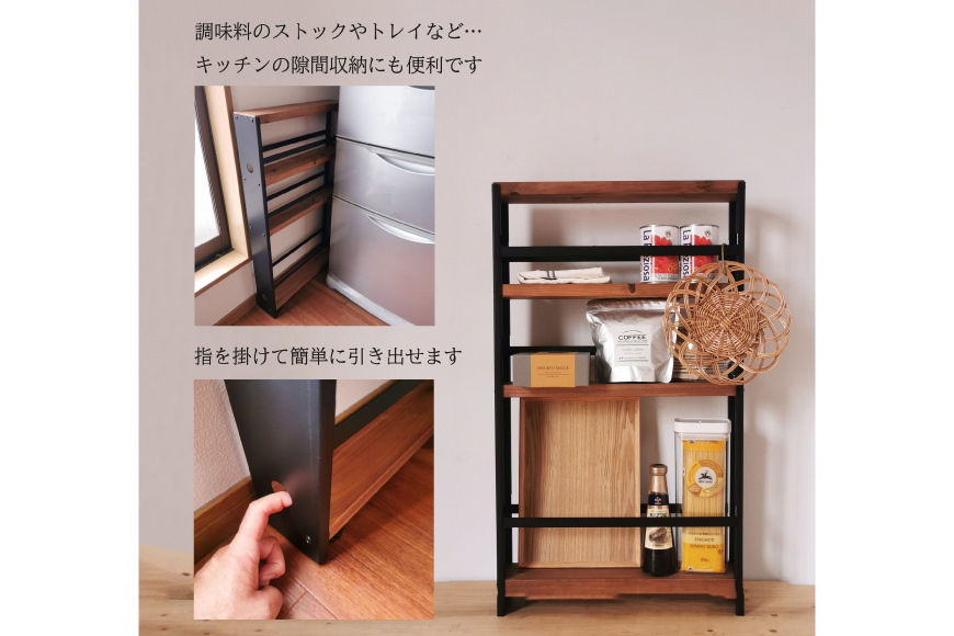 天然木とアイアンのマルチラック ブラック 完成品|新星金属製作所 大阪府 守口市 インテリア 家具 棚 隙間収納 キッチンストッカー 洗面所 リビング 無垢材 シンプル 本棚 シェルフ [2490]