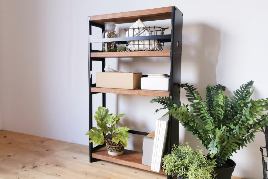 棚 天然木とアイアン マルチラック ブラック 奥行き15cm 完成品|新星金属製作所 大阪府 守口市 インテリア 家具 隙間収納 キッチンストッカー 洗面所 リビング 無垢材 シンプル 本棚 シェルフ [2494]