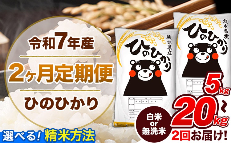 - 【2ヶ月定期便】令和7年産 定期便 無洗米 も選べる ひのひかり 5kg 10kg 15kg 20kg 《お申込み翌月から出荷》熊本県産 ふるさと納税 精米 ひの 米 こめ ふるさとのうぜい ヒノヒカリ コメ 熊本米---hn7tei_23000_5kg_mo2_gkt_h---