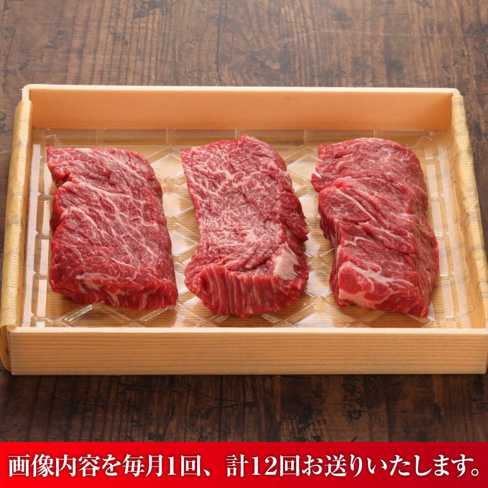- 【ふるさと納税】【全12回定期便】【GI認証】くまもとあか牛カイノミステーキ 約120g×3枚 / 菊陽町 あかうし 熊本県 肉 にく niku ブランド 旨み くまもとあか牛 和牛 自社牧場 直接 最高 牛 牛肉 ぎゅうにく ぎゅう肉 冷凍 国産【有限会社 三協畜産】[BHAS062]