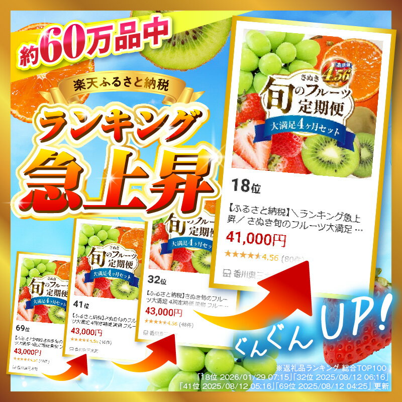 - 定期便 人気 フルーツ 毎月 4回 大満足 いちご みかん シャインマスカット キウイ