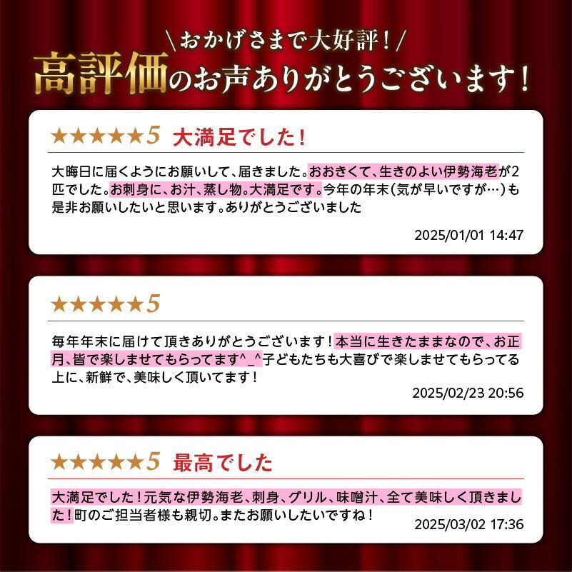 - 【ふるさと納税】高評価★4.94 文恵丸水産 <選べる内容量> 熊野灘産活伊勢海老( 魚介 海鮮 鮮魚 伊勢海老 伊勢エビ いせえび 海老 エビ 活きたまま 生きたまま )