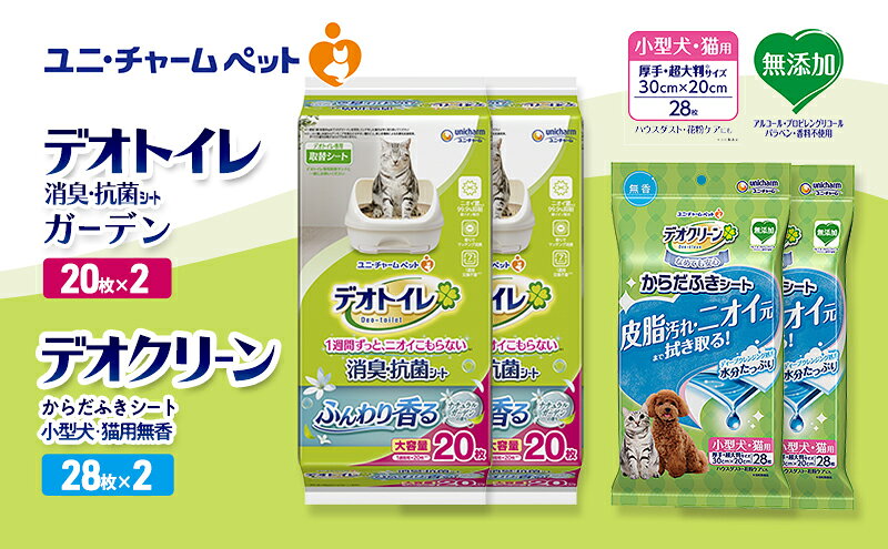 【ふるさと納税】デオトイレ 消臭・抗菌 シート ナチュラルガーデン 20枚×2 デオクリーン からだふきシート 小型犬・猫用 無香 28枚×2 ペットシーツ ペットシート トイレ 猫 猫用トイレ ペット 清潔 ユニ・チャーム お届け:通常ご寄附頂いてから約1~2ヶ月以内に発送