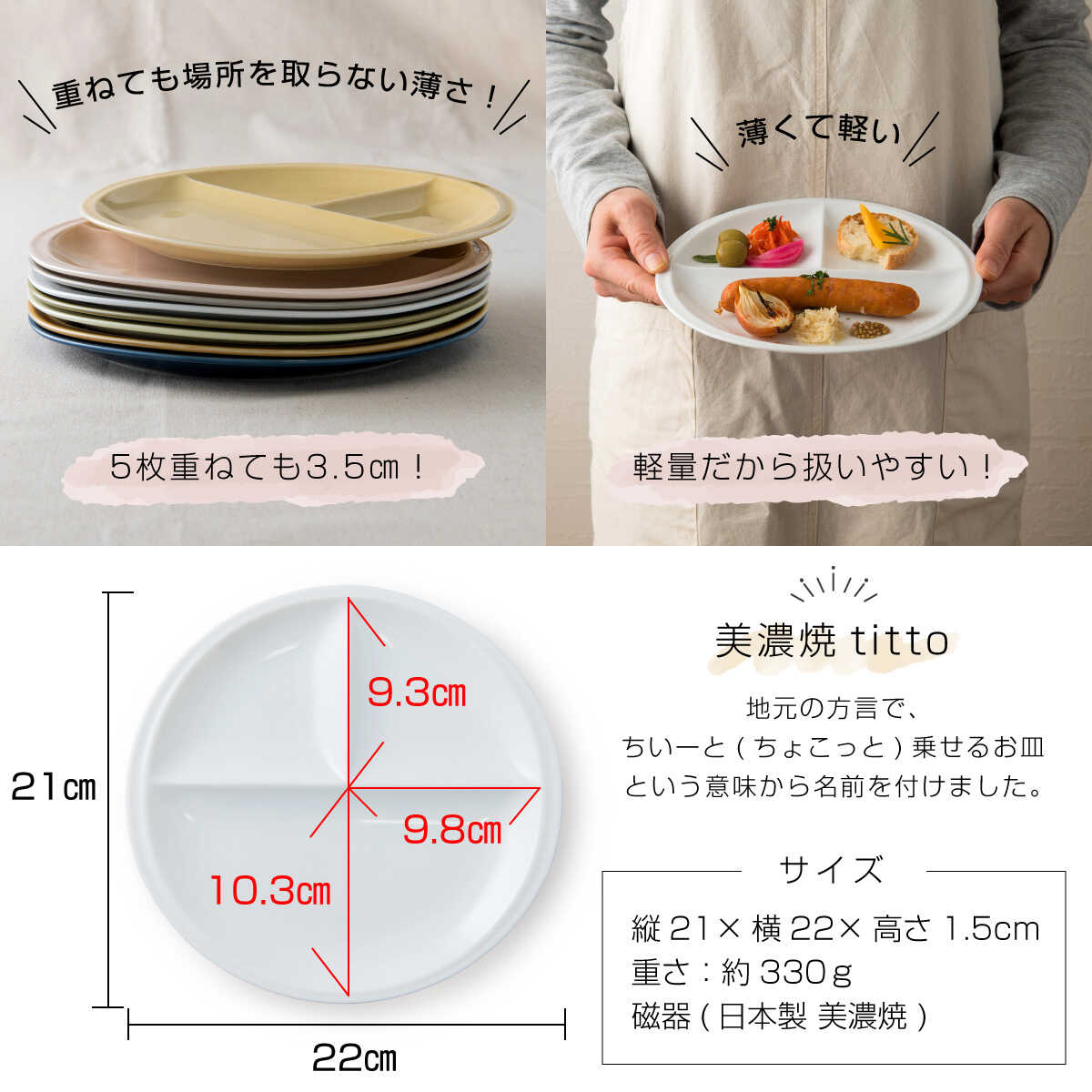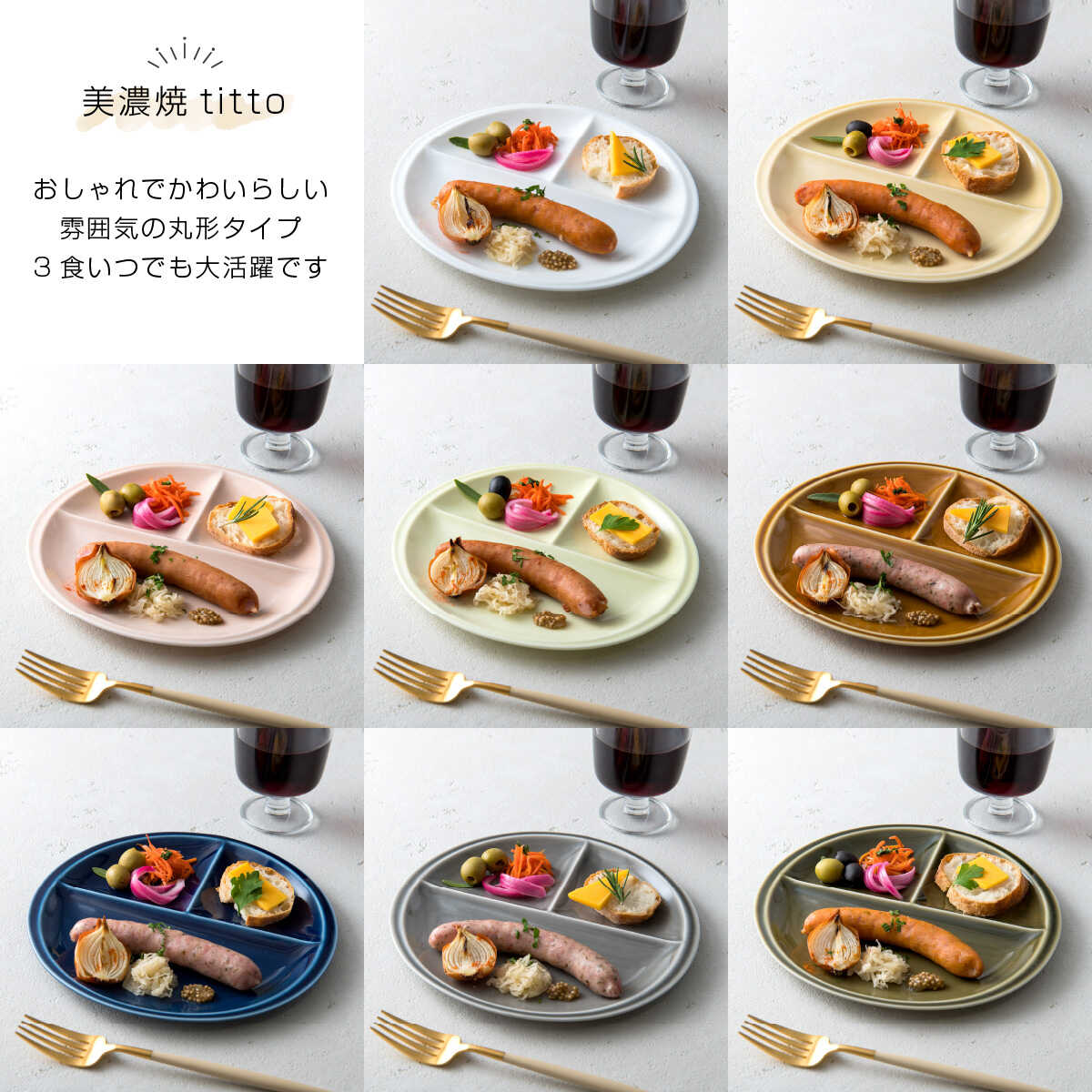 - 【ふるさと納税】【8色から選べる】【美濃焼】 ランチプレート titto 丸 2枚セット 瑞浪市 / JS企画 / 小田陶器 食器 プレート 仕切り皿 おしゃれ[AZAZ013]