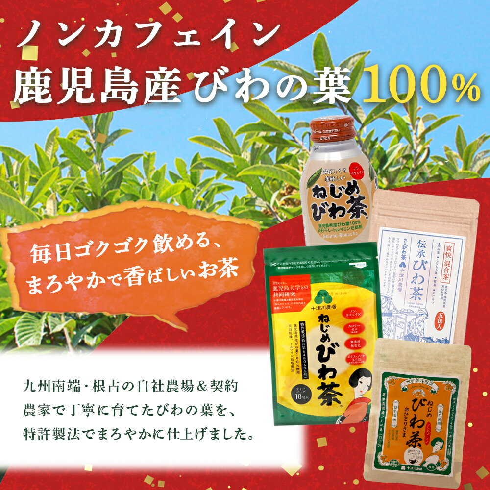 - 【ふるさと納税】【福袋】ねじめびわ茶うれしい満喫セット(5種)化粧箱入 TO-20-FB| ねじめ びわ茶 ボトル缶 国産 大容量 トルマリン石 焙煎 健康茶 お茶 煮だし 飲みやすい 香ばしい おいしい びわの葉 福袋 セット 飲み比べ 鹿児島県 南大隅町 十津川農場