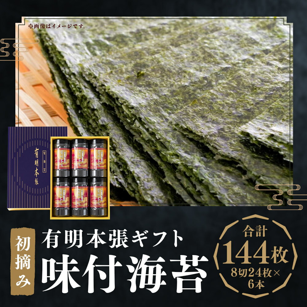 - 【ふるさと納税】初摘み海苔使用 有明のり 福岡県産 有明本張ギフト 計144枚(8切24枚×6本) 味付け海苔 あじつけ海苔 味つけのり あじつけのり 味海苔 あじのり 海苔 のり 有明海産 国産 九州 福岡県 嘉麻市 送料無料