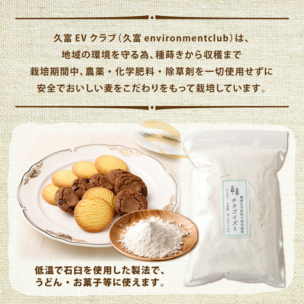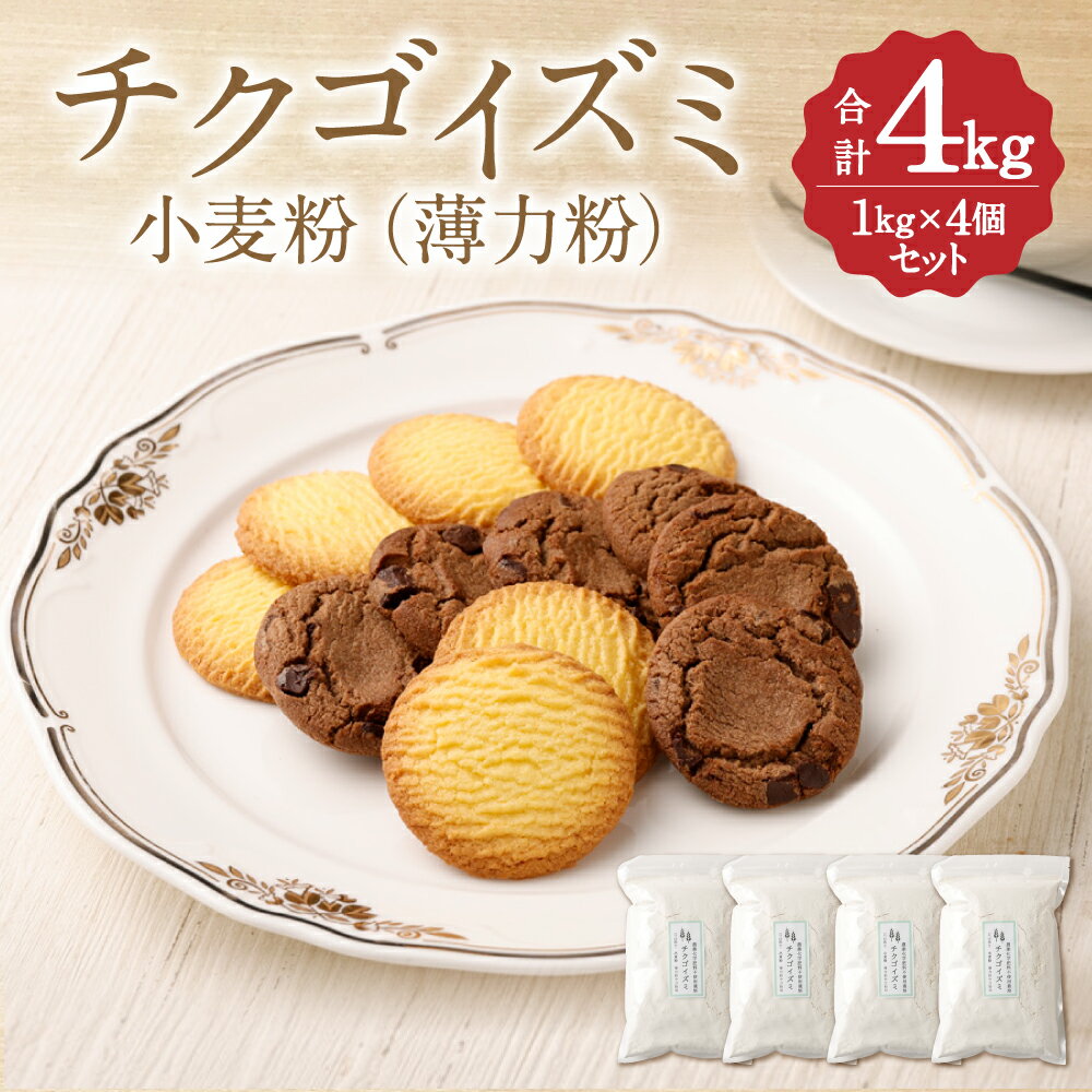 - 【ふるさと納税】チクゴイズミ 小麦粉 1kg×4個 合計4kg 粉 薄力粉 中力粉 うどん作り お菓子作り 栽培期間中農薬不使用 九州産 福岡県筑後市産 国産 送料無料