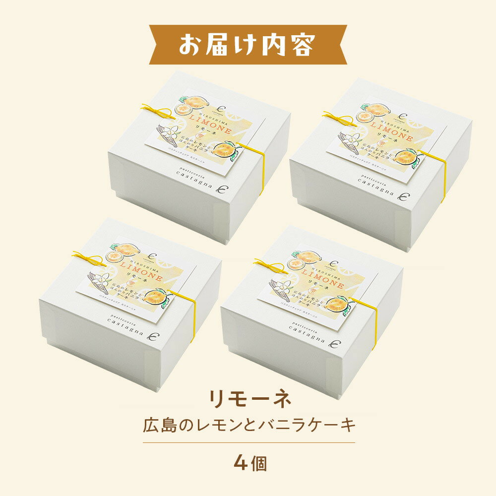 - 【ふるさと納税】リモーネ ~ 広島のレモンとバニラのケーキ ~ 4個 | 菓子 スイーツ デザート おかし 人気 食品 クリスマス バレンタイン ギフト プレゼント 手土産 お取り寄せ 広島市