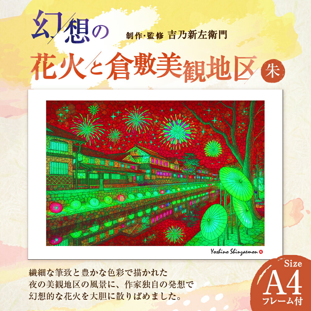 - 【ふるさと納税】幻想の花火と倉敷美観地区 朱 1枚 A4サイズ版 朱 吉乃新左衛門 現代アート 倉敷の風景 美観地区の景色 atelier SHINZAEMON 作画 原画コピー オリジナル額縁付 旅の思い出 ふるさとへの思い 部屋の雰囲気を最適化 絵画 インテリア 装飾 美術品 送料無料