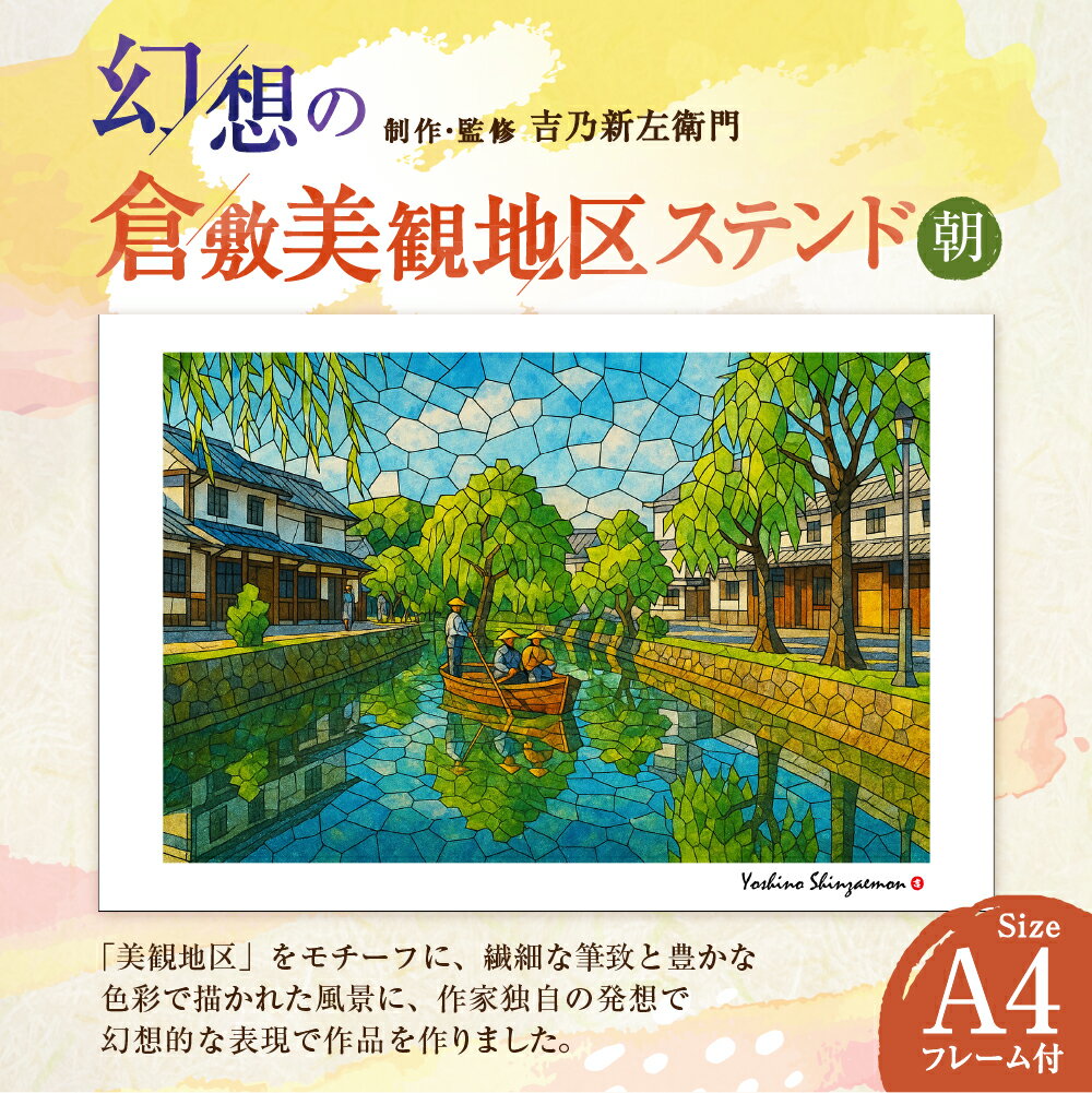 【ふるさと納税】幻想の倉敷美観地区 1枚 A4サイズ版 ステンド朝 吉乃新左衛門 現代アート 倉敷の風景 美観地区の景色 atelier SHINZAEMON 作画 原画コピー オリジナル額縁付 旅の思い出 ふるさとへの思い 部屋の雰囲気を最適化 絵画 インテリア 美術品 倉敷市 送料無料