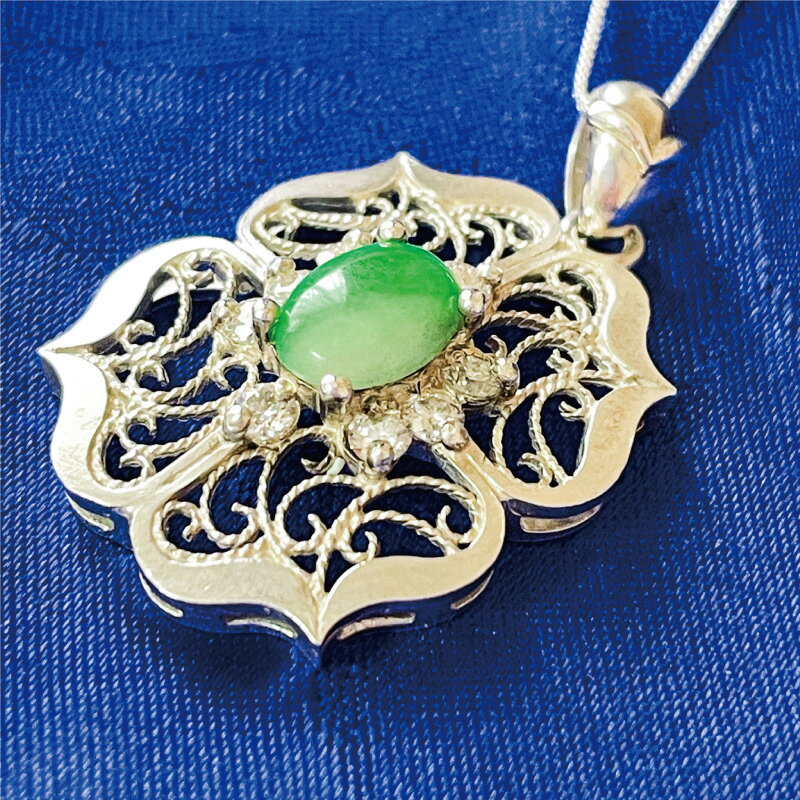 - 【ふるさと納税】 ネックレス 超希少 唐草模様と宝石のシルバーネックレス バイカラー翡翠 宝石 ジュエリー アクセサリー 記念日 プレゼント ペンダント 還暦 誕生日 クリスマス バレンタイン ホワイトデー 人気 おすすめ ふるさと納税 ジュエリー春日 奈良県 奈良市 なら