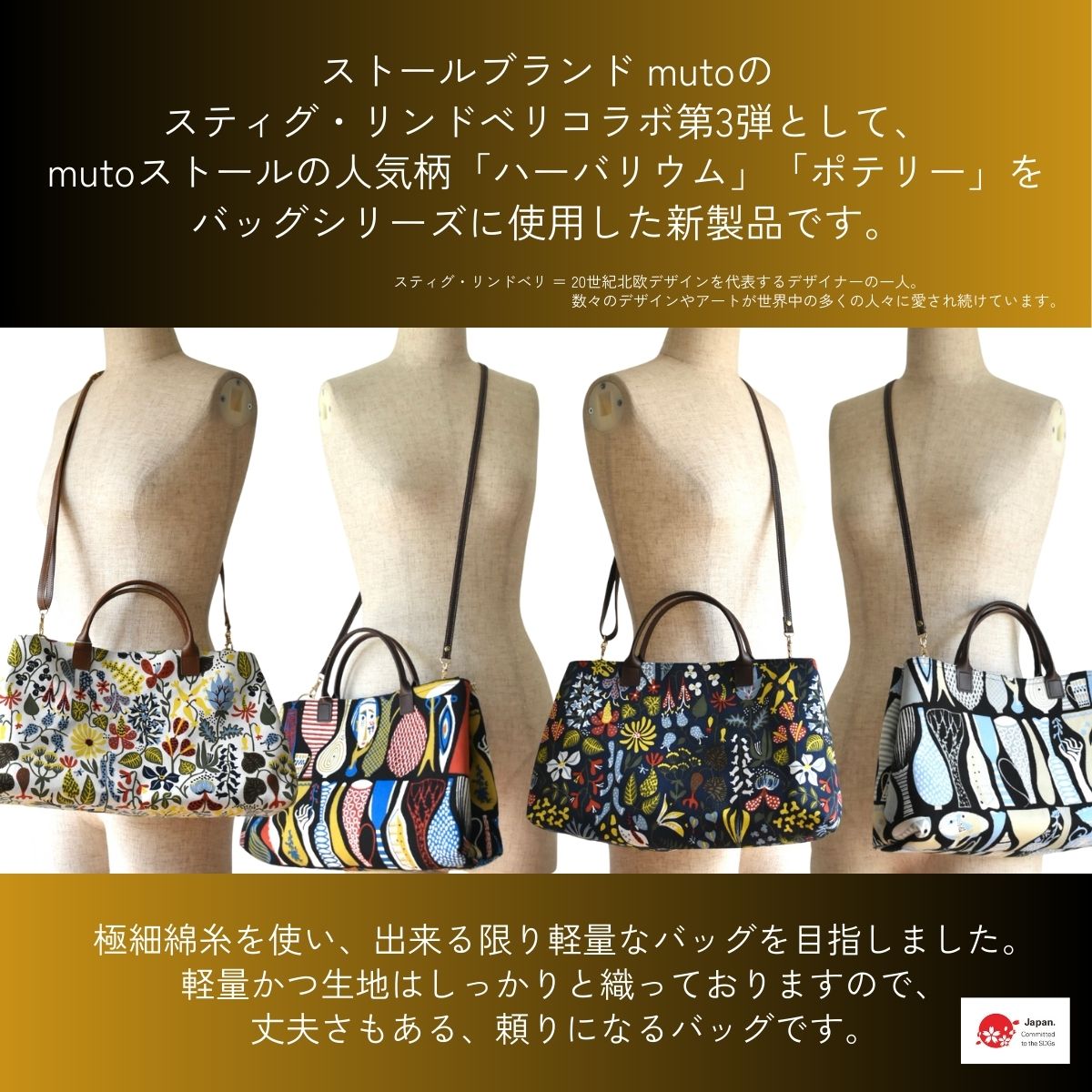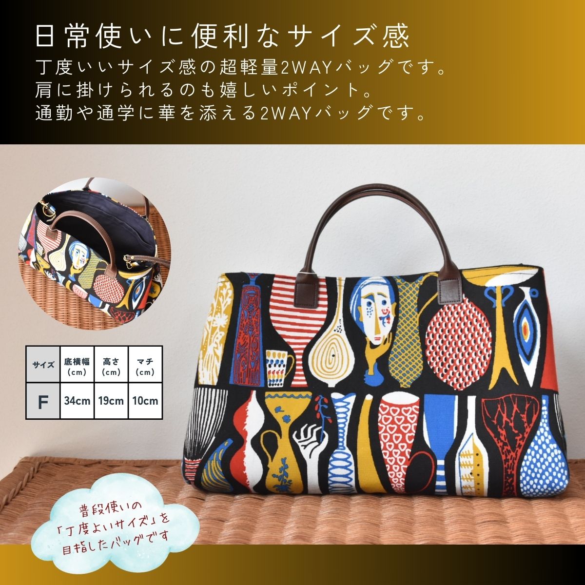 【ふるさと納税】軽量で大容量の北欧デザイン2WAYバッグ スティグリンドベリ 老舗ファクトリーが手掛けるデザインバッグ 選べる4色 /手提げ 肩掛け バッグ トートバッグ 2WAY アクセント 柄 軽量 丈夫[n0667]