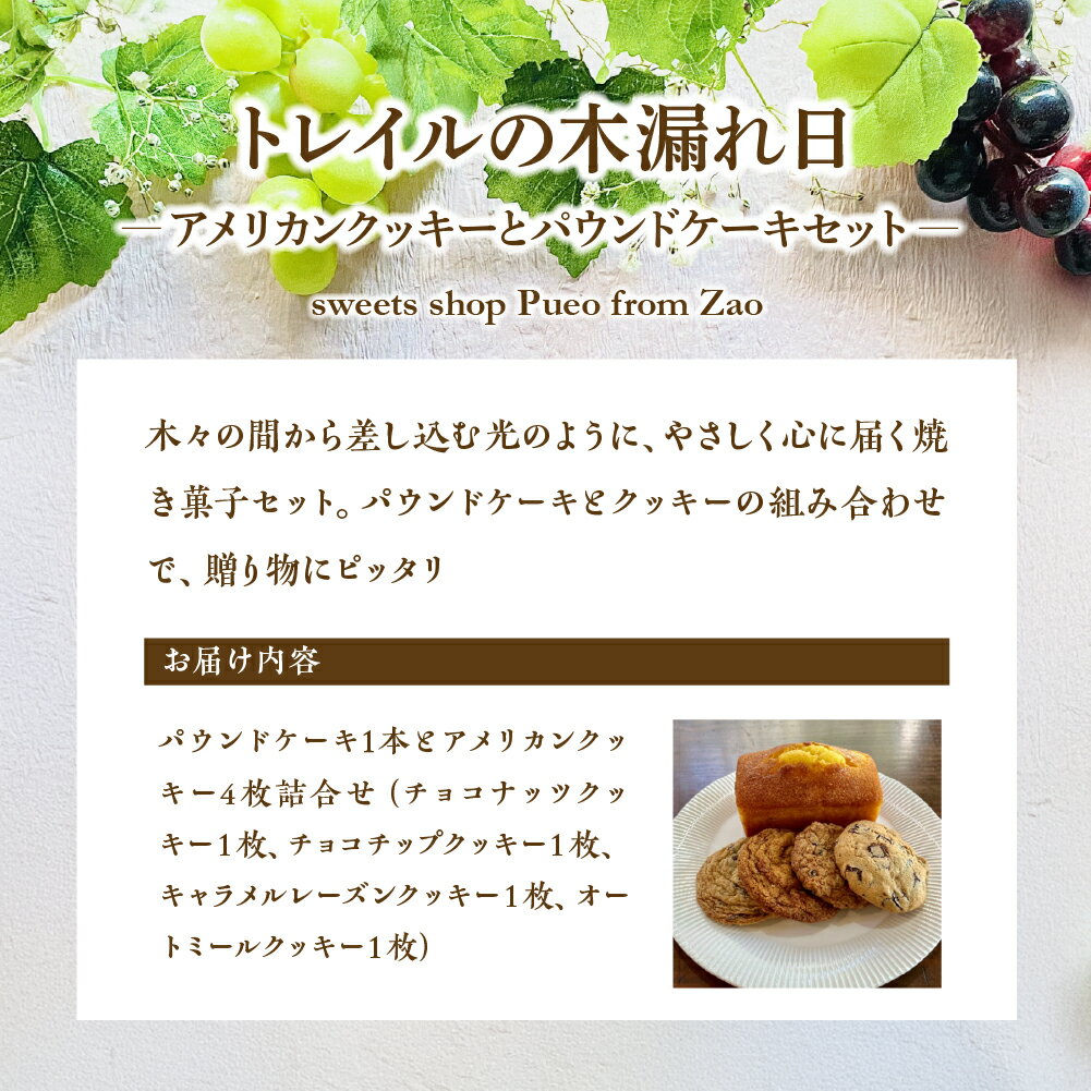 - 【ふるさと納税】トレイルの木漏れ日 ~アメリカンクッキーとパウンドケーキセット~【04301-0950】