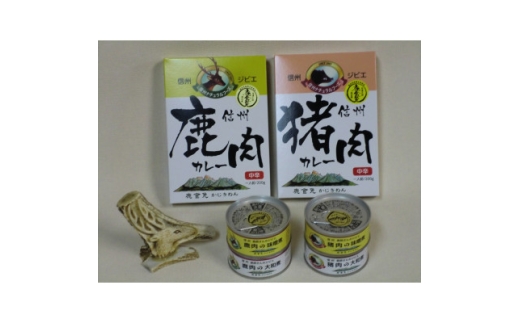 - 鹿缶2種・猪缶2種・鹿カレー・猪カレー 6点セット【1694279】