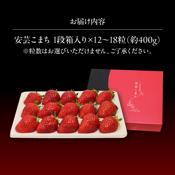 【先行予約】いちご 1段箱 <2026年1月以降順次発送> 水素水で育ったいちご「安芸こまち」1段箱入り(約400g)(12粒~18粒入) 低農薬 苺 イチゴ 高級 フルーツ 果物 ベリー ギフト 贈答 三次市/田中電機工業 [APBI002]