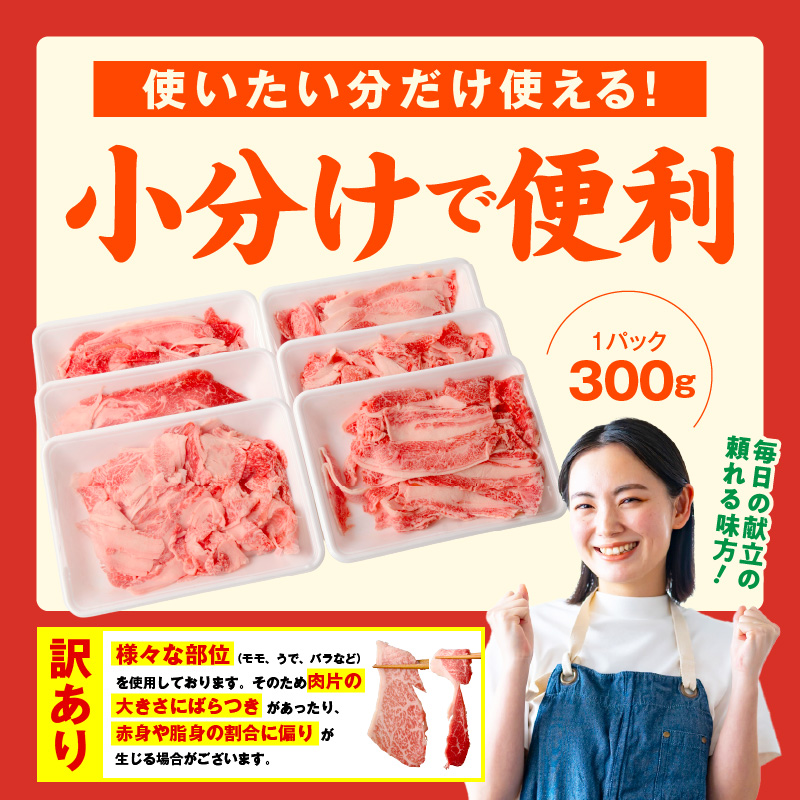 - 国産牛 切り落とし 1.8kg 小分け 300g×6P【国産 牛肉 氷温熟成×極味付け 訳あり サイズ不揃い カレー 牛丼 野菜炒め 肉じゃが 家計応援】 mrz0364