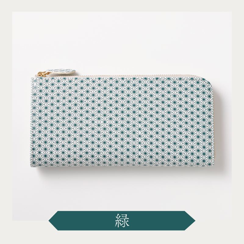 - 【浅草文庫】L字長財布 麻の葉柄(カラー:緑)
