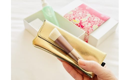 - 熊野化粧筆 ファンデブラシ小(ケース付)と筆シャンセット【メイクブラシ 化粧筆 ファンデーションブラシ ベースメイク 仕上げ 熊野筆 伝統工芸 職人技 高級筆 セット お手入れ】