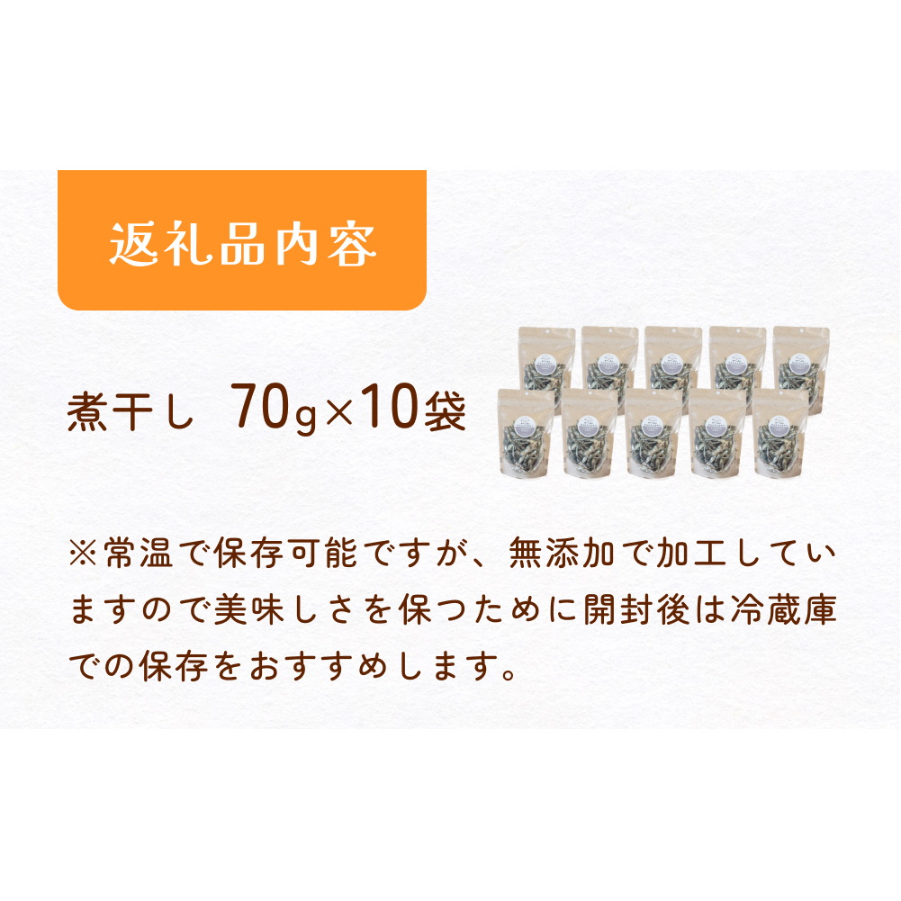 - 無塩加工煮干し 煮干し屋のわんにゃんおやつ 70g×10袋 無塩 煮干し 鰯 ペットフード 人間も可 犬 猫 富山県 氷見市