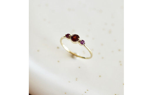- 【サイズ:13.5号】< 甲府ジュエリー >【ジュエリー】K10 イエローゴールド 2色のガーネットリング 指輪 保証書付 NR-1844