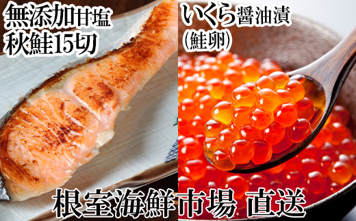 - A-14168 いくら醤油漬け(鮭卵)70g×2P、無添加天然甘塩秋鮭15切