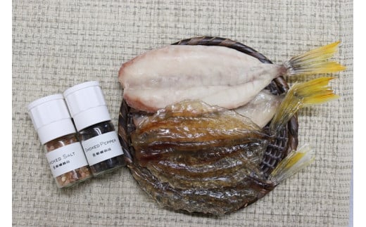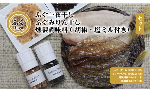 - ふぐ一夜干し ふぐみりん干し 燻製調味料 セット 【ふぐ 一夜干し フグ 河豚 干物 化学調味料不使用 無添加 保存料無し おつまみ 冷凍 長門市】