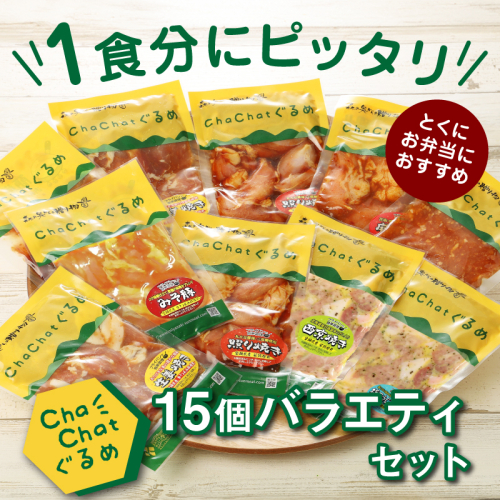 - 【 一人暮らし応援・子育て応援・時短・お弁当】ChaChatぐるめ15個バラエティセット K16_0040_2 お弁当のおかず 簡単調理 時短 調理済み みそ豚 5種類×3 真空 国産豚肉 国産若鶏 お惣菜 冷凍 焼くだけ 一人暮らし 手軽 宮崎県産 スピード調理 送料無料