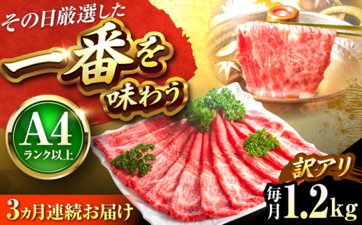 【全3回定期便】【訳あり】【A4〜A5】博多和牛 赤身 霜降り しゃぶしゃぶ すき焼き用(肩・モモ)1.2kg 吉富町/株式会社MEAT PLUS [BGAB089] 肉 霜降り 黒毛和牛 牛肉 すきやき 霜降り 黒毛和牛 国産 福岡県