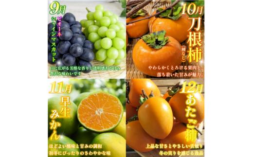 - 旬の果実 定期便 12回 フルーツ 果物 野菜 季節 旬 詰め合せ 国産 おまかせ 産地直送 シャインマスカット いちご みかん キウイ 不知火 トマト ピオーネ 梨 柿 徳島県