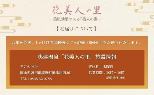 - 奥津温泉「花美人の里」日帰り入浴券(5回分)051-a001