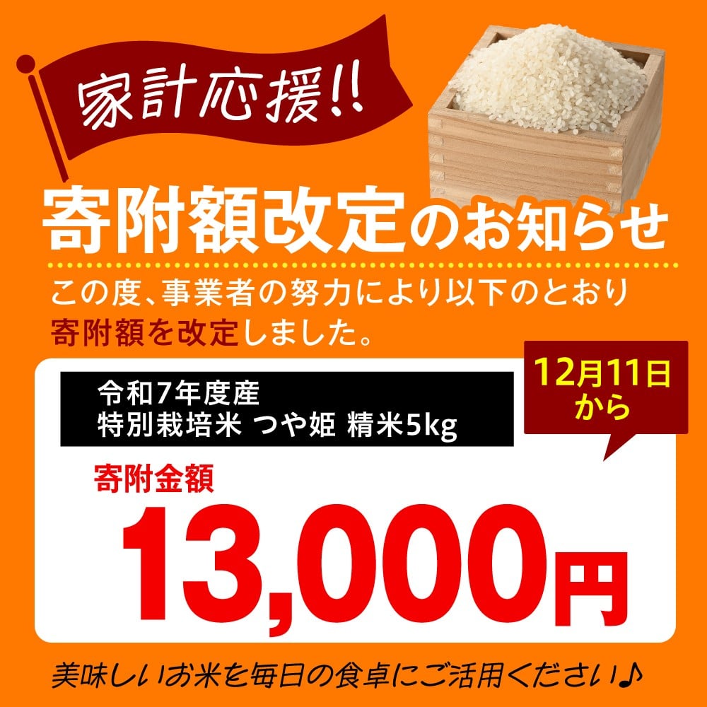 【令和7年産】 ※選べる配送時期※ 特別栽培米 つや姫 5kg 〔精米〕