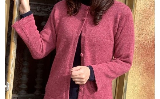 - アルパカカーディガン レディースM ベリーピンク(アルパカ100%)【アパレル 桃色 羽織 レディース 茨城県 水戸市 ギフト プレゼント】 (AL-13)