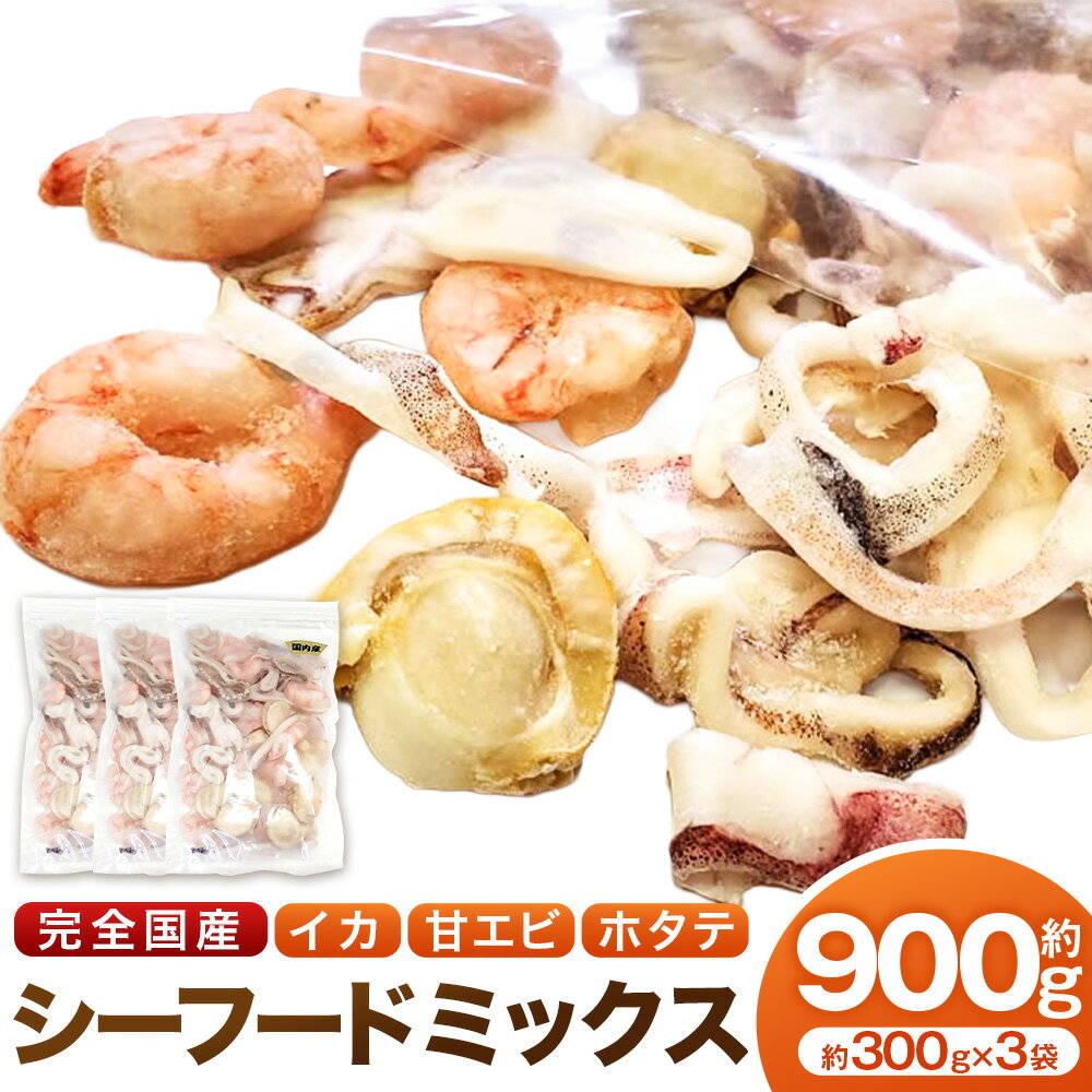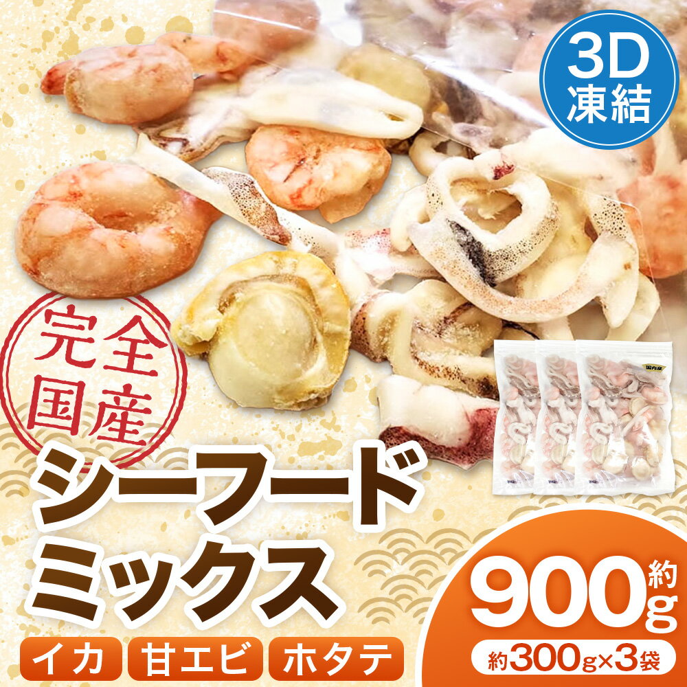 【ふるさと納税】完全国産3種シーフードミックス 約300g×3 【3D凍結】【配送不可地域:離島】【1152092】