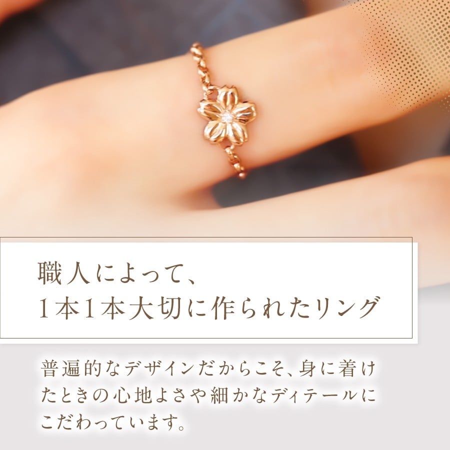 - F-004 K18PG 富士桜ダイヤモンドチェーンリング リング 指輪 ダイヤ K18 ピンクゴールド ジュエリー 山梨 富士吉田