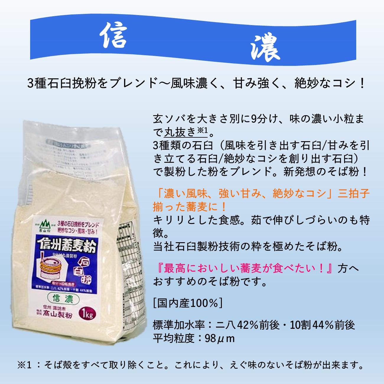 - 石臼挽信州そば粉【信濃】【白樺】【八ヶ岳】1kg入り各1袋(計3袋(3kg))/髙山製粉 そば粉 蕎麦粉 そば 蕎麦 手打ち 石臼挽 食べ比べ 信州 信州そば おすすめ おいしい 長野県 諏訪市 諏訪 【101-05】