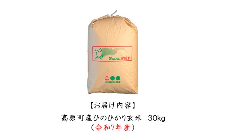 【2026年3月にお届け】宮崎県高原町産 令和7年産ひのひかり玄米 30kg TF00886-P00079