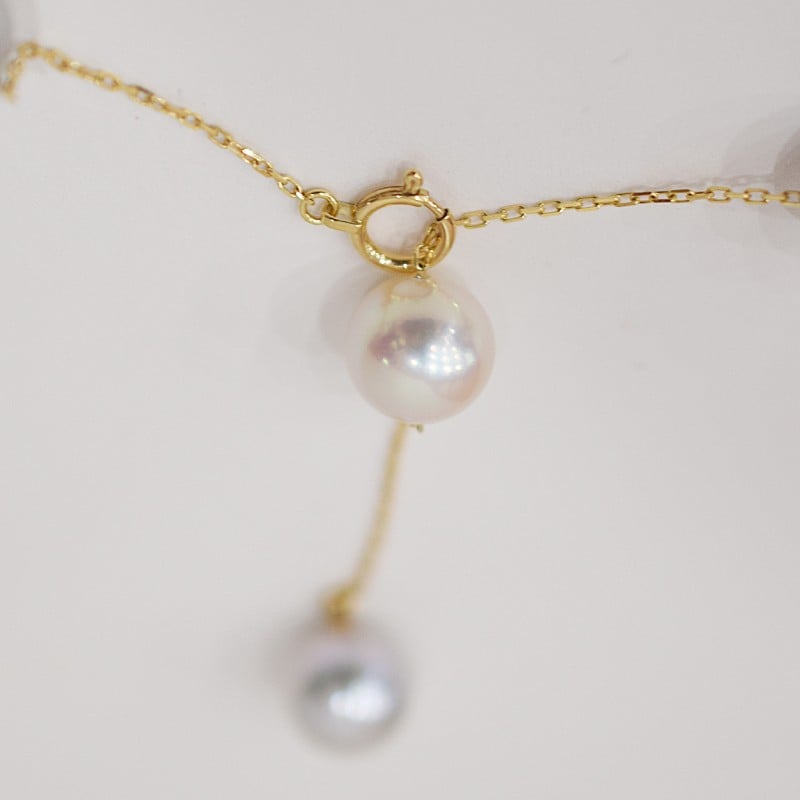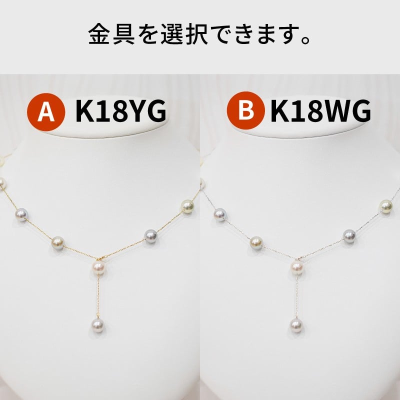 S101-462-sku_あこや真珠 天草 ネックレス ステーション マルチ Y字 2WAY 無調色 8mm - 8.5mm K18