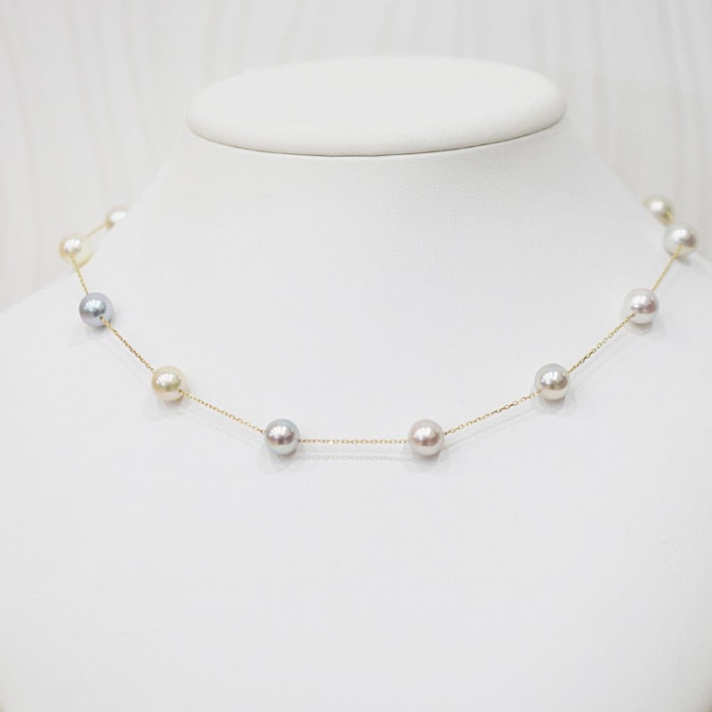 - S101-462-sku_あこや真珠 天草 ネックレス ステーション マルチ Y字 2WAY 無調色 8mm - 8.5mm K18