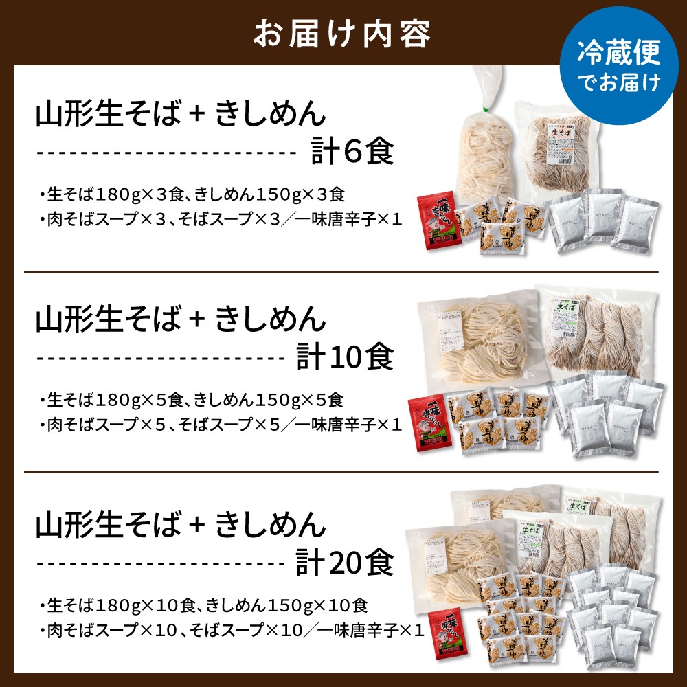 ≪選べる内容量≫山形生そば+きしめん「6食・10食・20食セット」 山形県 東根市 hi095-020-o