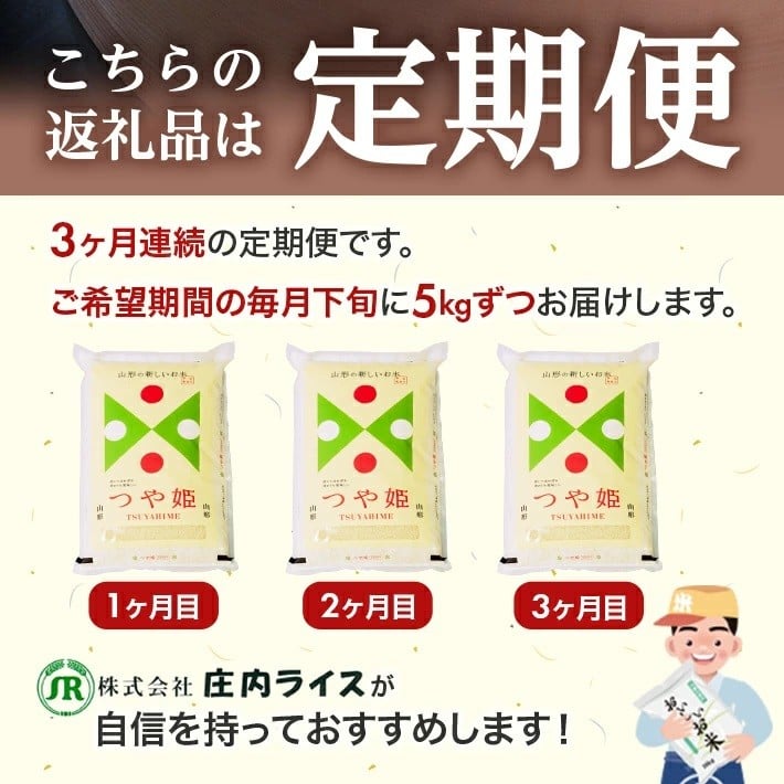 - 1292T 【定期便】庄内産つや姫5kg×3ヶ月連続