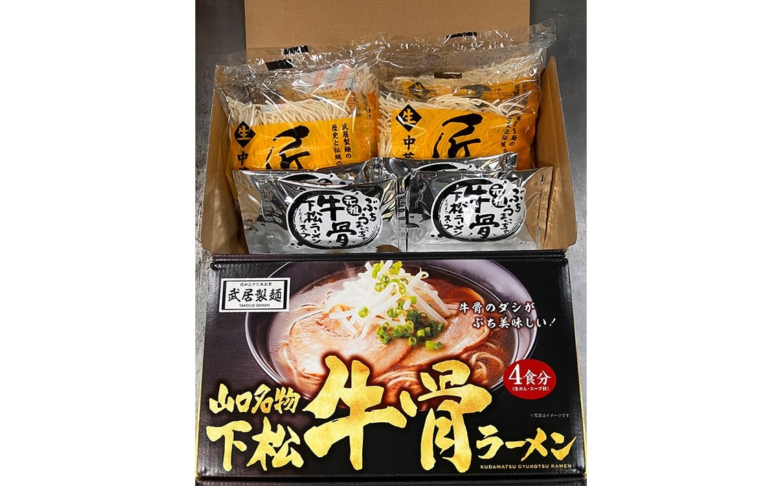 下松・牛骨ラーメン4食入り 650g / めん 麺類 本格ラーメン 至福の一杯 牛コツ 山口県 No.220