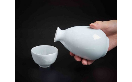 - 【セット】【井上萬二窯より井上祐希作】白磁釉滴酒器( 桐箱付き )ぐい呑み、徳利