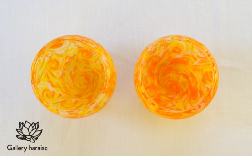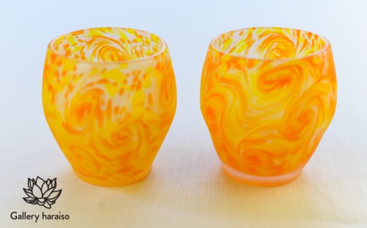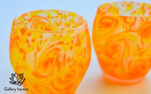 - 【琉球ガラス】マンゴー・丸口ロックグラス(ペア)