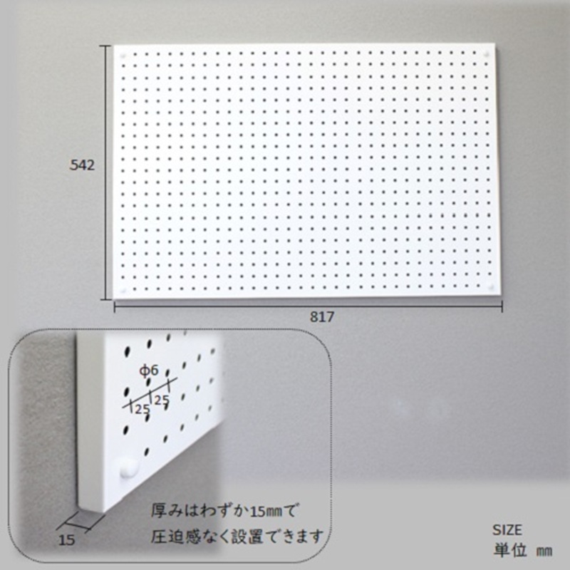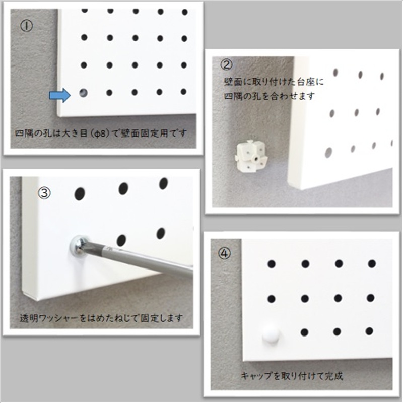 - スチールパンチングパネル壁面取付タイプ 白 有孔ボード 壁面収納 マグネット パンチング ディスプレイ スチールパンチングボード スチール マグネットボード ヘルメット掛け 石膏ボード壁 キッチン 洗面所 玄関