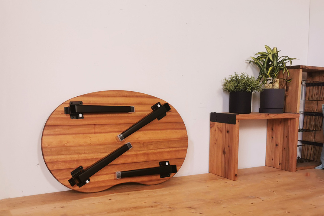 - 折りたたみローテーブル そら豆型 Sサイズ (天然木/完成品) 木目が美しい横はぎ材使用|新星金属製作所 大阪府 守口市 ナチュラル テーブル 折りたたみ ローテーブル リビング 子供 子供部屋 おしゃれ 家族 [2503]