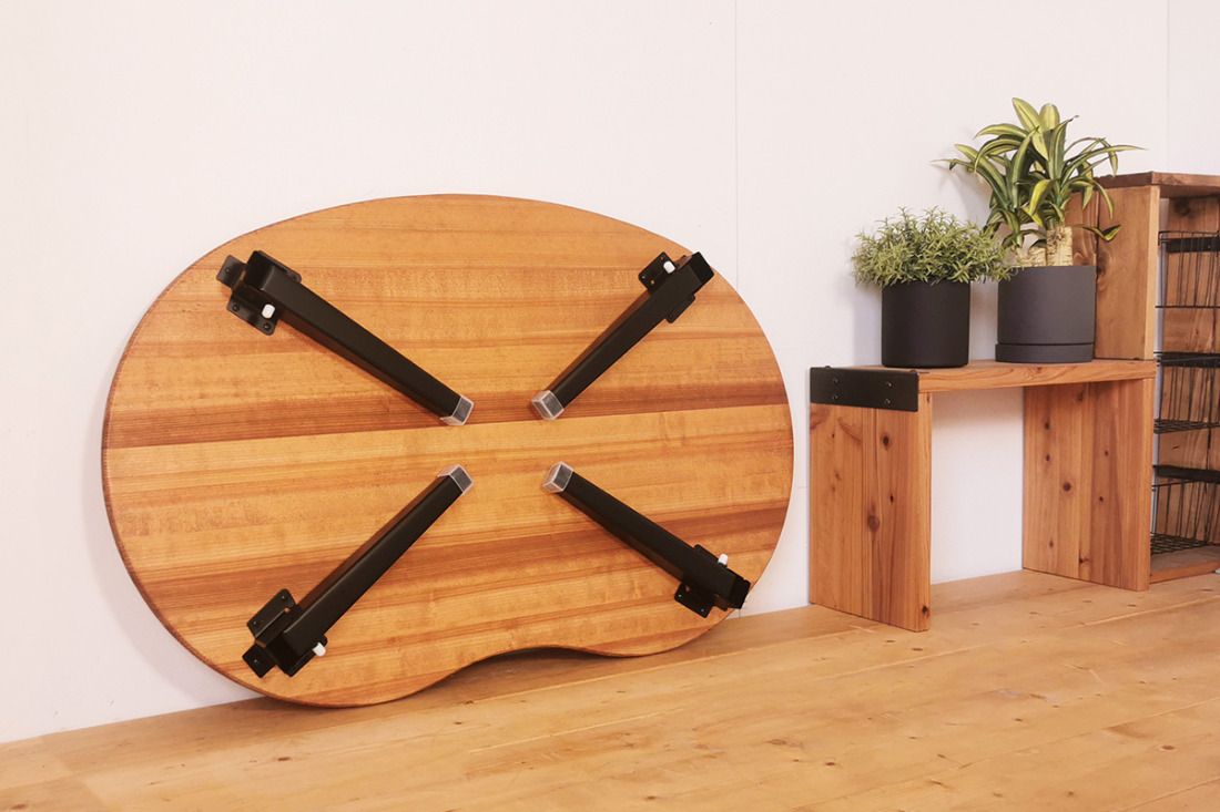 - 折りたたみローテーブル そら豆型 Mサイズ (天然木/完成品) 木目が美しい横はぎ材使用|新星金属製作所 大阪府 守口市 ナチュラル テーブル 折りたたみ ローテーブル リビング 子供 子供部屋 おしゃれ 家族 [2504]
